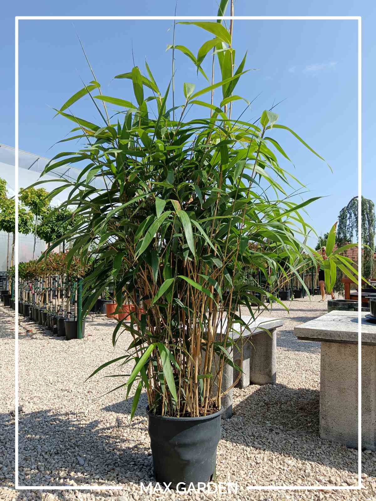 Bambus - Bambusa pseudosasa japonica, známy tiež ako japonský šípkový bambus, je atraktívny druh bambusu, ktorý je obľúbený pre svoj kompaktný rast a dekoratívne listy. Tento druh bambusu je cenený pre svoje husté zelené listy, ktoré môžu pridať tropický nádych do rôznych záhradných štýlov, od ázijsky inšpirovaných záhrad až po moderné krajinné dizajny. Bambusa pseudosasa japonica je ideálny pre vytvorenie súkromia alebo ako výrazná rastlina v záhradnej kompozícii.