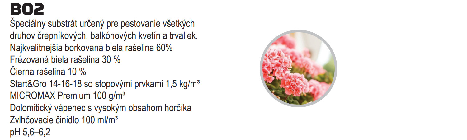 Ľahký typ vzdušného priepustného substrátu, stredne vyhnojený, s nižším pH pre pestovanie všetkých druhov dvojročných rastlín, letničiek a balkónoviek. Zaručuje rovnomernú výživu a je ideálny pre pestovanie krátkodobejších kultúr.